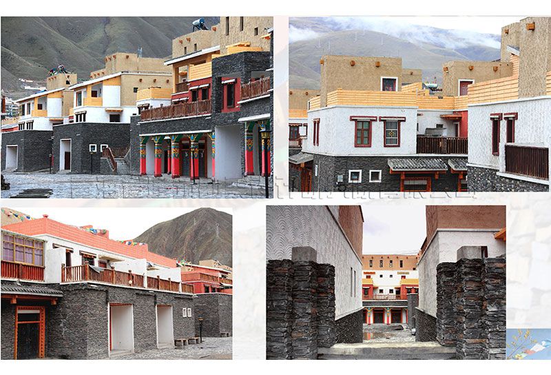 該工程設(shè)計充分考慮到地震區(qū)災(zāi)后重建的特殊性及當(dāng)?shù)鬲毺氐牡赜蛱厣?,結(jié)合現(xiàn)狀分析和研究。規(guī)劃建筑方案與當(dāng)?shù)厝罕娺M(jìn)行探討,結(jié)合地震災(zāi)區(qū)安置政策逐戶鎖定住戶意愿,進(jìn)行規(guī)劃設(shè)計,在現(xiàn)有資源利用、地形地勢與城市周邊環(huán)境的融合、居住交通與空間模式的有機結(jié)合、居住特色與環(huán)境品質(zhì)的塑造等方面作了有益的探索,為居民創(chuàng)造良好的居住生活環(huán)境。造型設(shè)計中對傳統(tǒng)藏式建筑加以提煉簡化,力圖做到“神似”,并不是傳統(tǒng)建筑符號的簡單堆砌,使建筑群整體形象兼具地域風(fēng)格與時代特征,既尊重玉樹當(dāng)?shù)亟ㄖ默F(xiàn)狀,同時又具有時代的特征。